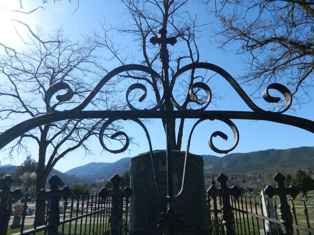 There is something really eerie about these grave fences in the St. Joseph Catholic Cemetery (Yreka, Ca). I love that some of the handles have wear from regular visits.