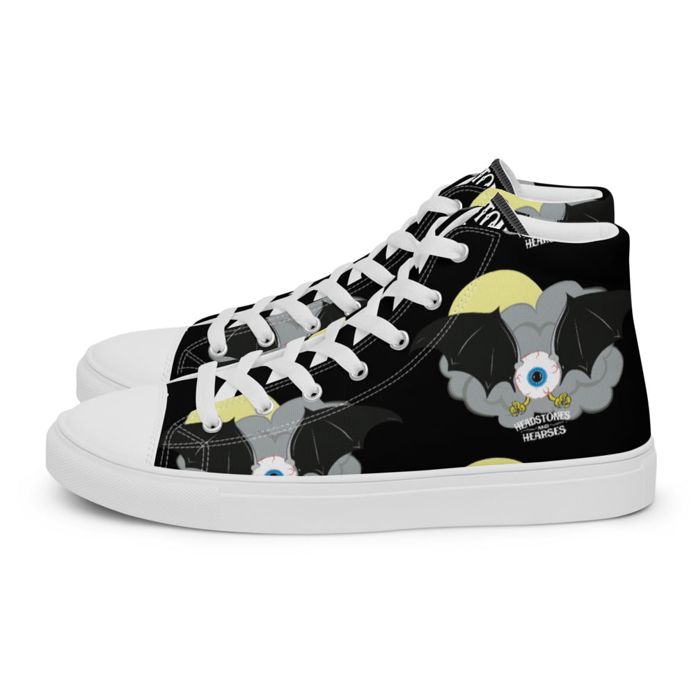 Spice up your high-top game with these crazy black retro canvas kicks. Printed with our Flying Eyeball Bat. Get weird!